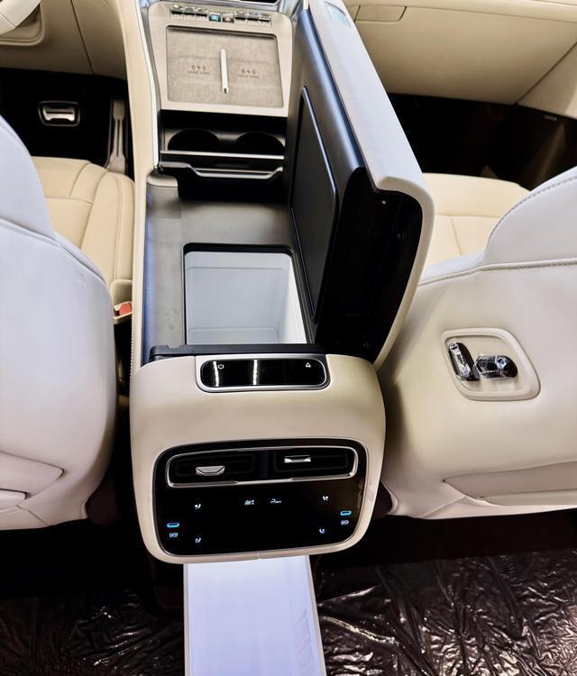 车内采用2+2+2式的6座布局,前、后排四座椅支持电动调节、通风、加热、按摩等功能。主驾座椅还提供两档主动侧翼调节;副驾则为零重力座椅,具有4向调节腿托以及一键零重力模式;二排右侧座椅同样提供电动腿托,再配合17.3英寸后排吸顶屏、“三开门”智能冷暖冰箱、双折叠小桌板等配置,乘坐舒适性不言而喻;而第三排座椅也支持前后、靠背电动调节以及加热功能。